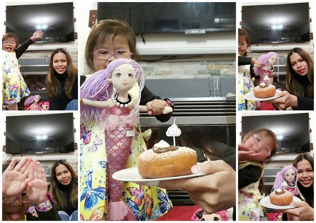 Or it could be as simple as celebrating your daughter’s mermaid doll’s birthday. A make-believe story spun the night before turned into something more tangible the next day — with a lighted cloud candle on top of a nutella donut and with all her favourite toy friends in attendance to witness Jeff, Raven, and me singing the mermaid a happy birthday. The Aussie way, no less — with a hip hip hooray! at the end of the song.