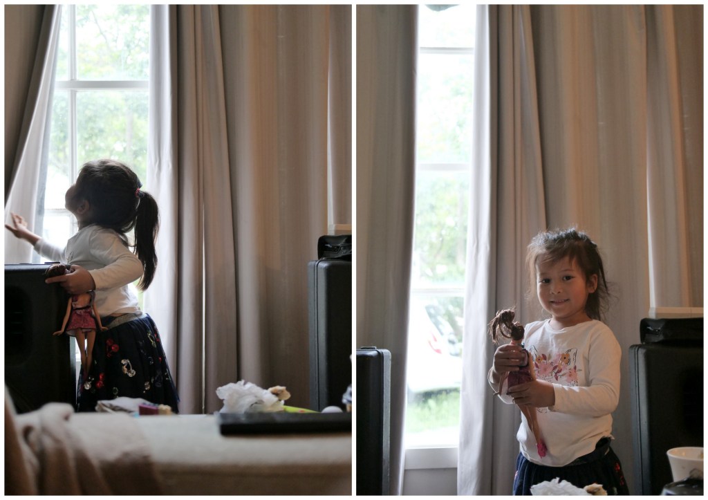 Went back home and picked Raven up from school on the way. “Raven’s taking a bit more time to collect her art stuff, Jewey,” the day care staff in shorts said.