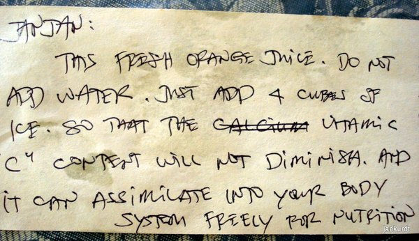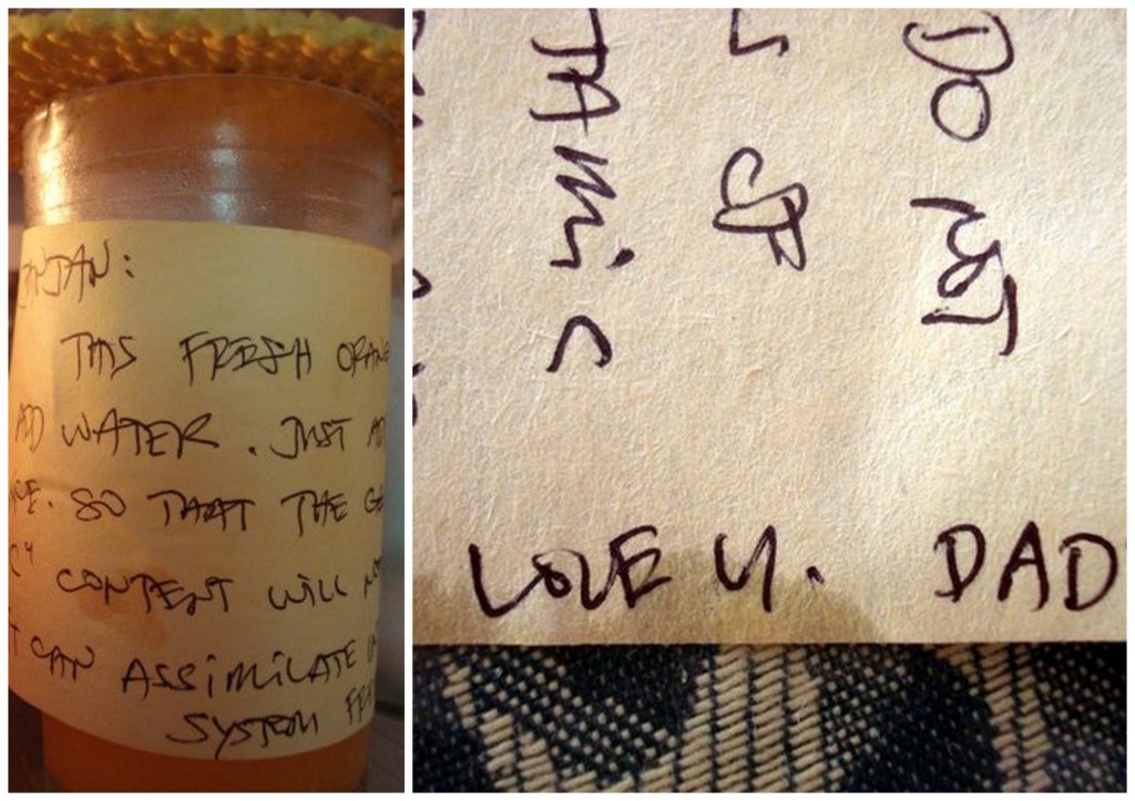This was one of those things he liked to do — leave notes for me on a glass of juice in the fridge, on my bedroom door, on a freaking pomelo, for crying out loud! He was funny like that. Thoughtful as. The best dad one could ever ask for.