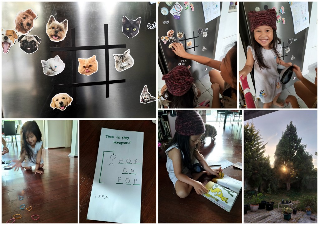 So she did the whole XOX game where she was the cat, of course. El was the dog. She had to win a round. Even made her play tanday-tanday, which is this Filipino game I used to play as a kid wherein players throw their rubber bands on the floor and whoever overlaps them gets to keep both rubber bands for themselves. Something like that. An introduction to Filipino culture.