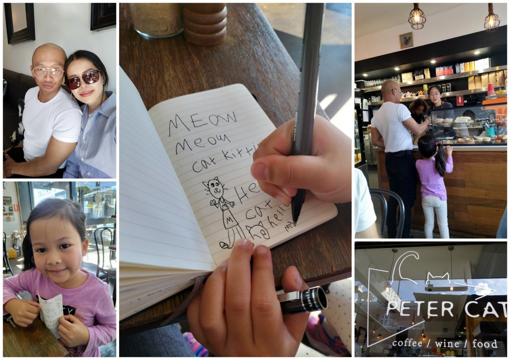 As it was a holiday and all and most restaurants were closed, the cafe down the road from my sister’s place was full. So we drove up to this shopping strip in Malvern and found ourselves in Peter Cat Cafe where the decors were all cats, cats, and more cats. Because Raven.