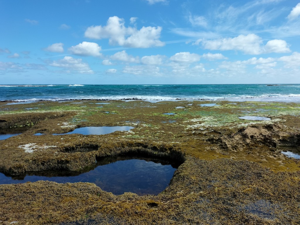 Raven enjoyed the rock pools — eroded rocks that formed crevices into which sea creatures live and thrive in calm comfort from the strong tides. Together, we explored and saw little fishes darting around, snails curled up in their shells, and starfishes chilling in their place.