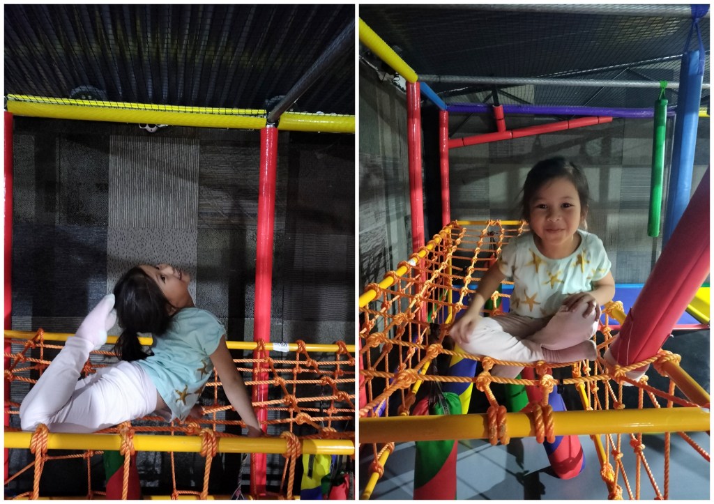 Still, as Raven didn’t really hit it up with any of the other kids there, I was left to be her playmate, squeezing myself into those narrow spaces between foam-covered stairs to chase her across a tunnel of rope obstacle course so we could go down the slides together.