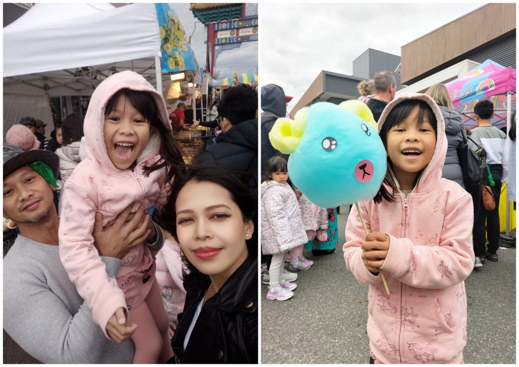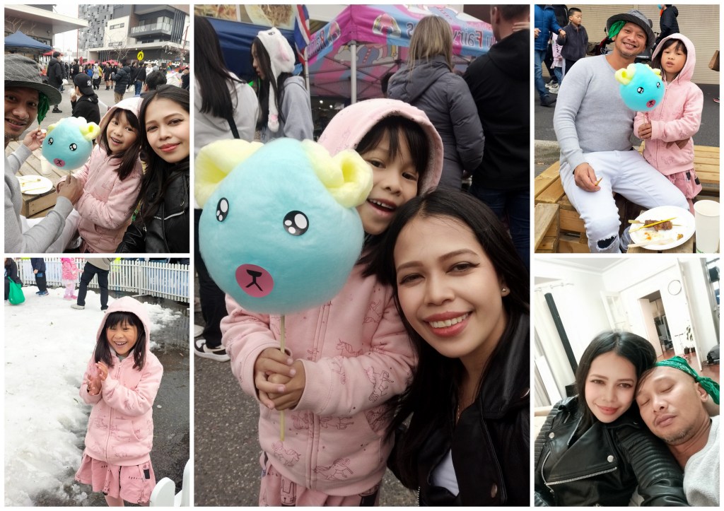 It wasn’t just the snow we queued up for. There was the also the fairy floss, the ride tickets, and the Vietnamese and Cambodian food stalls that suddenly had Jeff hungry even after the halal sausage sandwich he had had at the Eid Festival that we checked out earlier to meet up with a friend and her family. There wasn’t much going on there so we left. I was hoping there was gonna be a camel ride but apart from maybe three or four rides, there was only Zaky, the muslim version of Barney who teaches kids Islamic stuff.