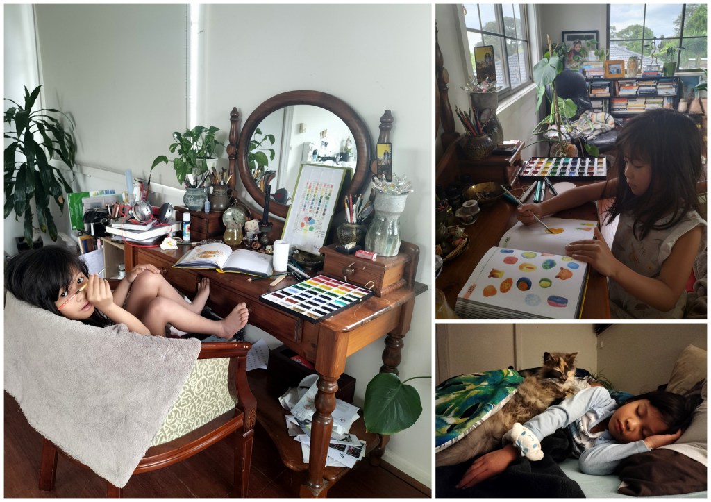 But if there’s one person in this house making the most out of my ‘Creativity’ book, it’s Raven. Today, she must’ve done about seven activities, using my art materials and my journaling table while I was demoted to cleaning the double-sided sticky tapes off her desk.