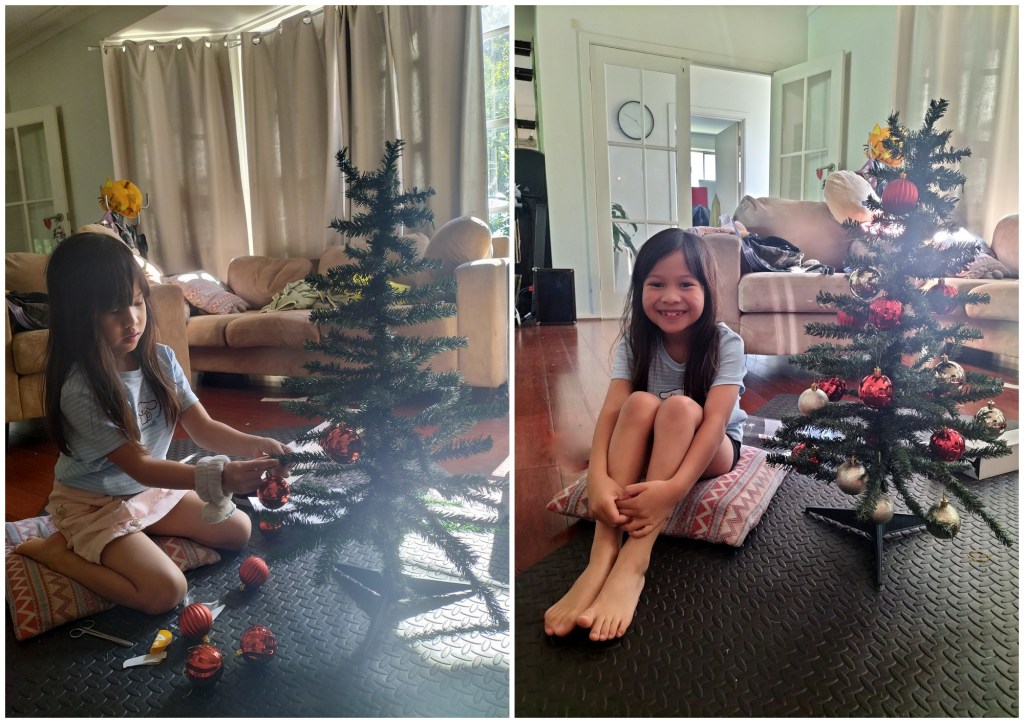 But she got her tree. She said we can use it again next year and I totally agreed. 100% we’ll set up the little tree again next year because it is a beautiful tree and I love it just as much as she does.
