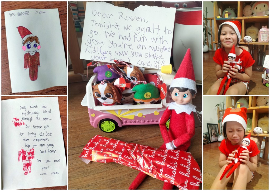 The elves had said their goodbyes. A bittersweet Christmas Eve that saw Raven crying over the impending flight of the cheeky little buggers she fondly called her friends. Every morning was something to look forward to to check if they were up to something naughty.